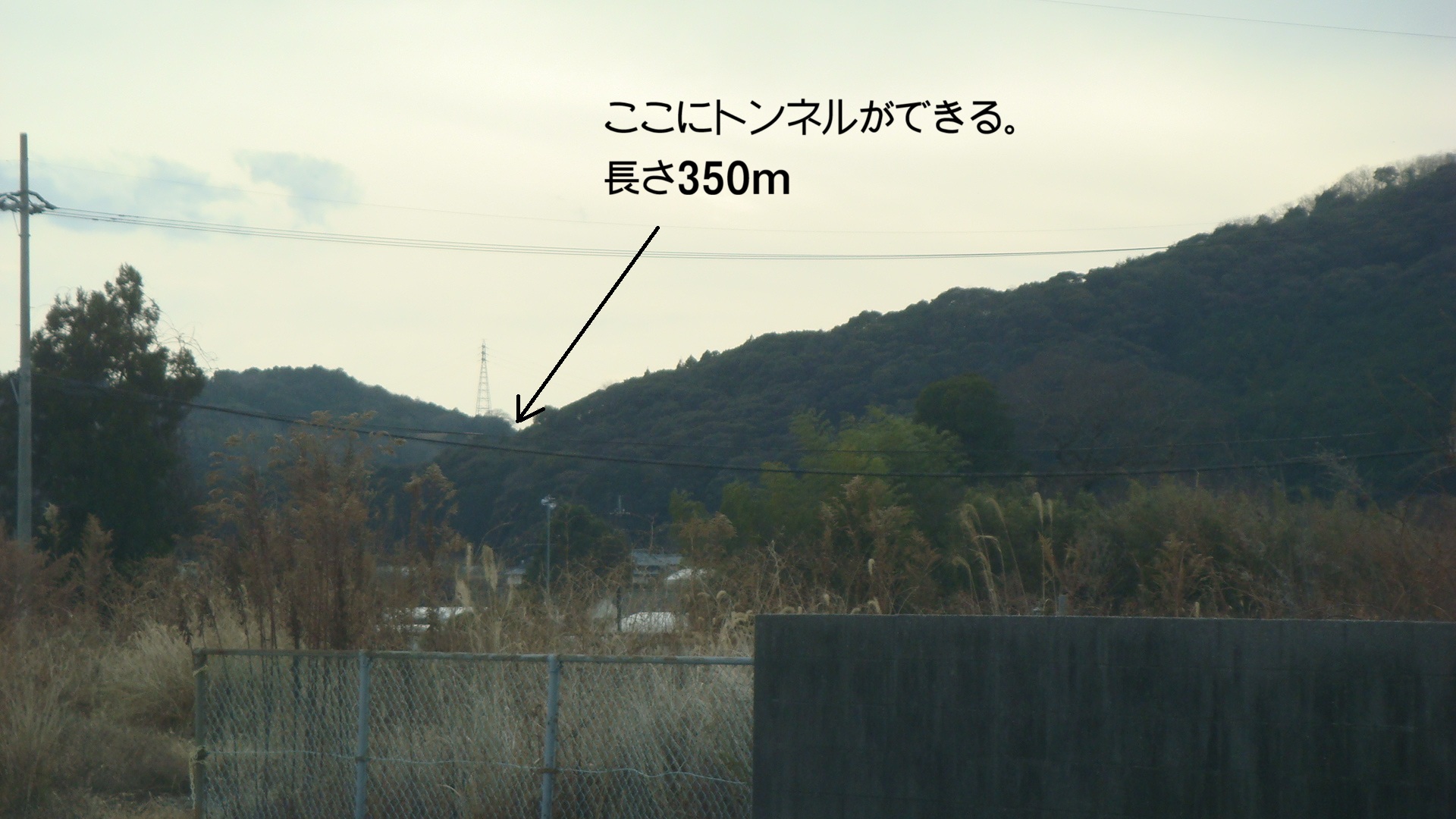 鉄塔がある所にトンネルができる予定です。長さは350㍍で、ラジオ放送施設は設置されない予想です。道路予定地に民家があるため、現在用地交渉中のようです。