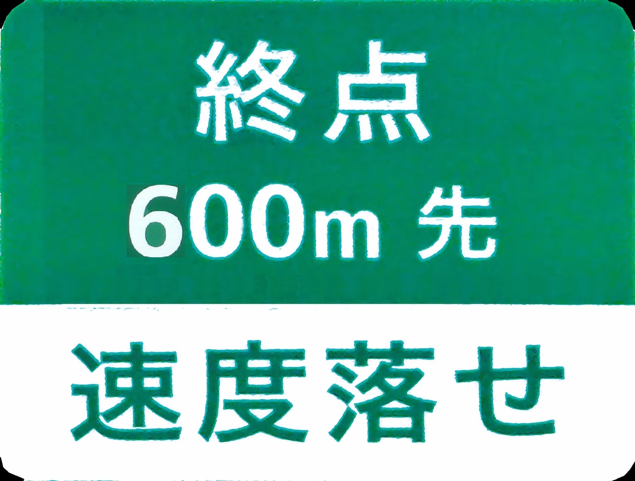 終点600m先 速度落せ