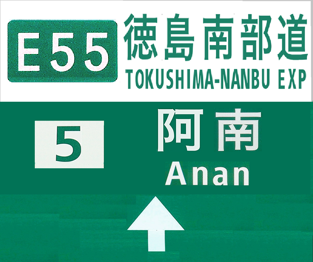 阿南インターチェンジの入口標識(103-A標識)の予想です。先ほどの画像を利用して作成したものです。