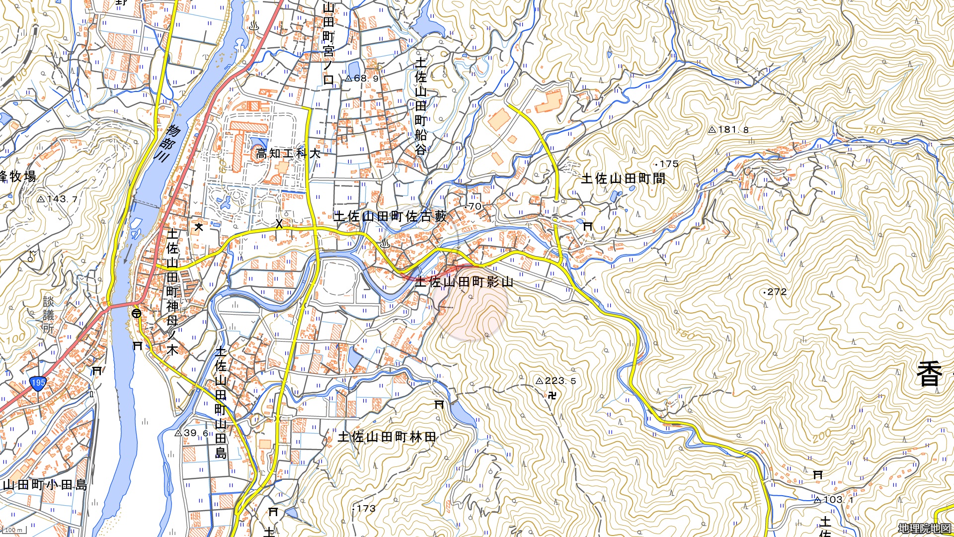 県道22号龍河洞公園線の改修案は下の地図の通り(国土地理院)