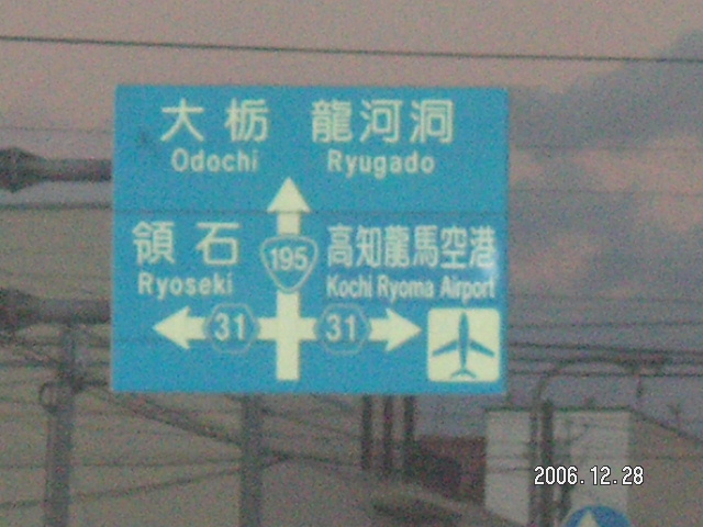 国道195号山田西町セブンイレブン前の交差点付近GS前にあった道路標識の「高知龍馬空港」の表示…あったほうがいいかも