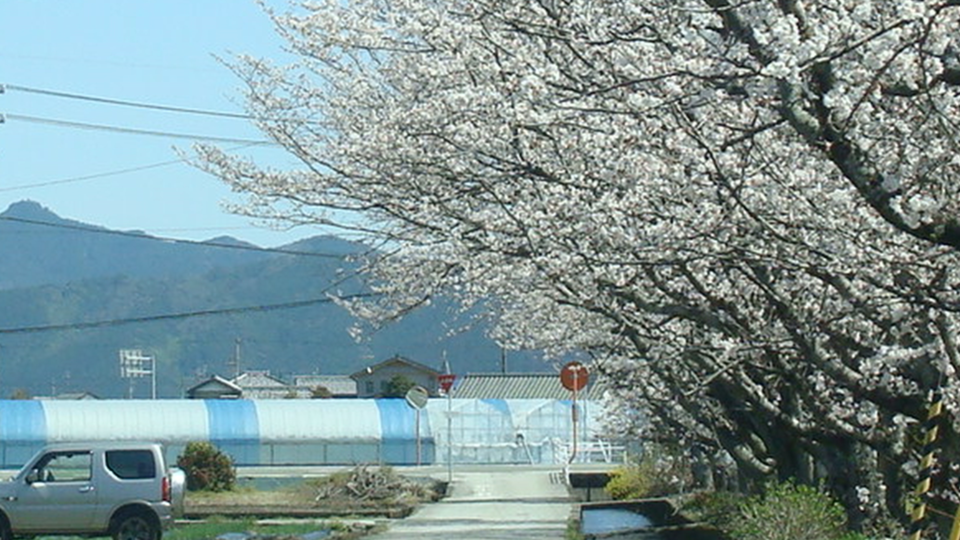 南国市内のごみ焼却施設前の広域農道にある英語入り「止まれ」標識です。